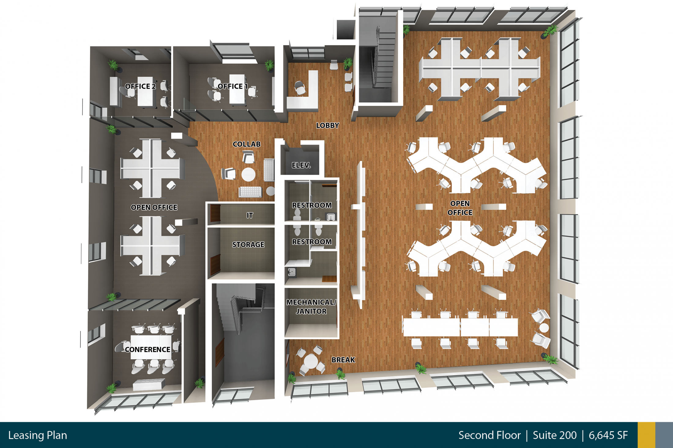 - 2,707 SF to 6,645 SF Available on the second floor.