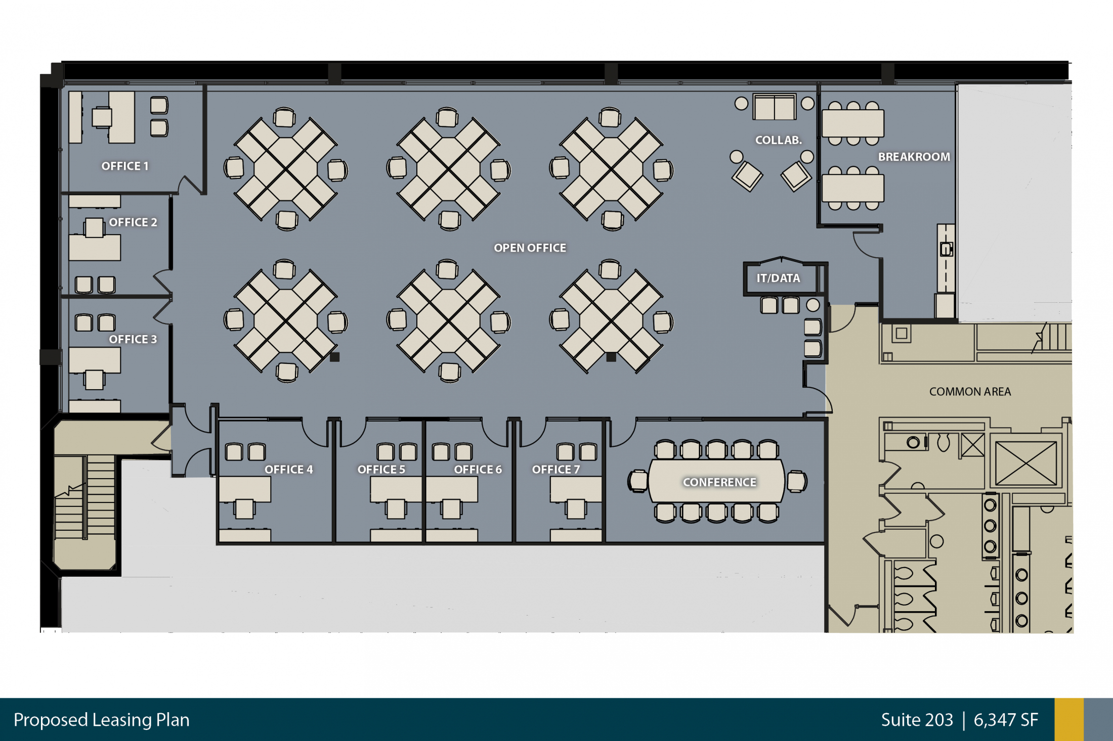 - 6,347 SF available on second floor.